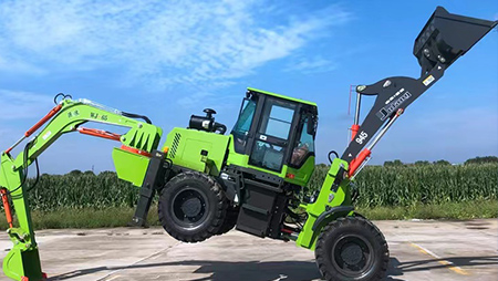 連接復(fù)合動(dòng)作一拖二操作手柄,簡(jiǎn)介易操作由于它具有共同的結(jié)構(gòu),前端是裝載設(shè)備,后端為發(fā)掘設(shè)備。在施工時(shí),操作手只需求翻滾一下座椅,就可以結(jié)束從裝載機(jī)到發(fā)掘機(jī)的改動(dòng)